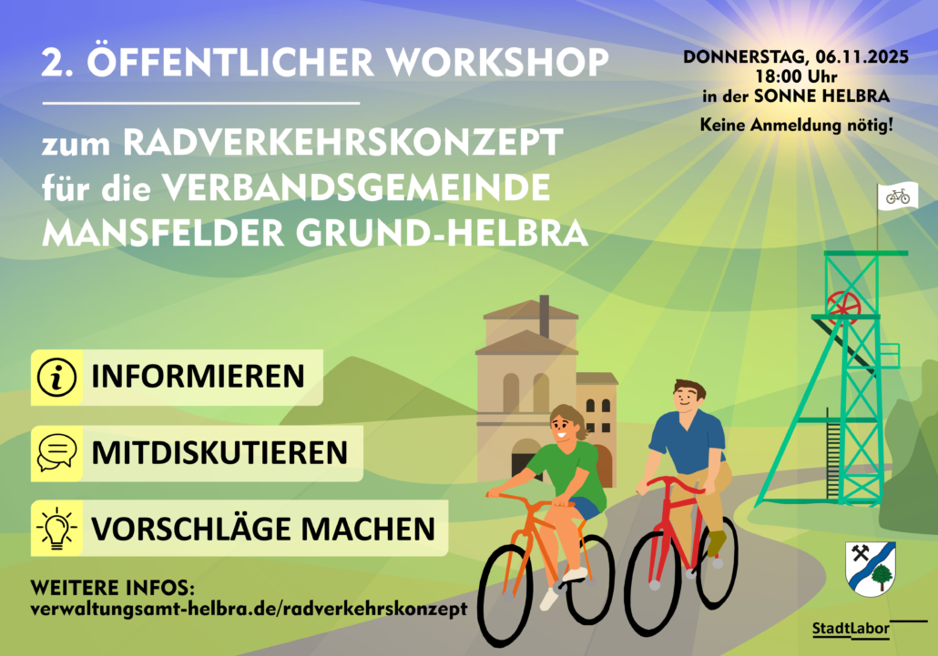 In der Verbandsgemeinde Mansfelder Grund-Helbra soll das Radfahren sicherer und attraktiver werden. Dafür erarbeitet die Stadt ein Radverkehrskonzept und möchte alle Einwohnerinnen und Einwohner einladen, sich zu beteiligen. Ziel des Projektes ist, dass Menschen künftig öfter das Fahrrad wählen, um zur Arbeit und zur Ausbildung zu kommen, aber auch ihre Freizeitwege damit zurücklegen. Bessere Radwege, mehr Möglichkeiten, das Fahrrad sicher abzustellen und ein rücksichtsvolles Miteinander im Straßenverkehr sollen mehr zum Radfahren einladen.